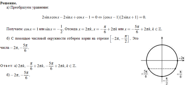 а) Решите уравнение sin2x=2sinx-cosx+1 б) Укажите корни уравнения, принадлежащие отрезку [-2Pi;-Pi/2]