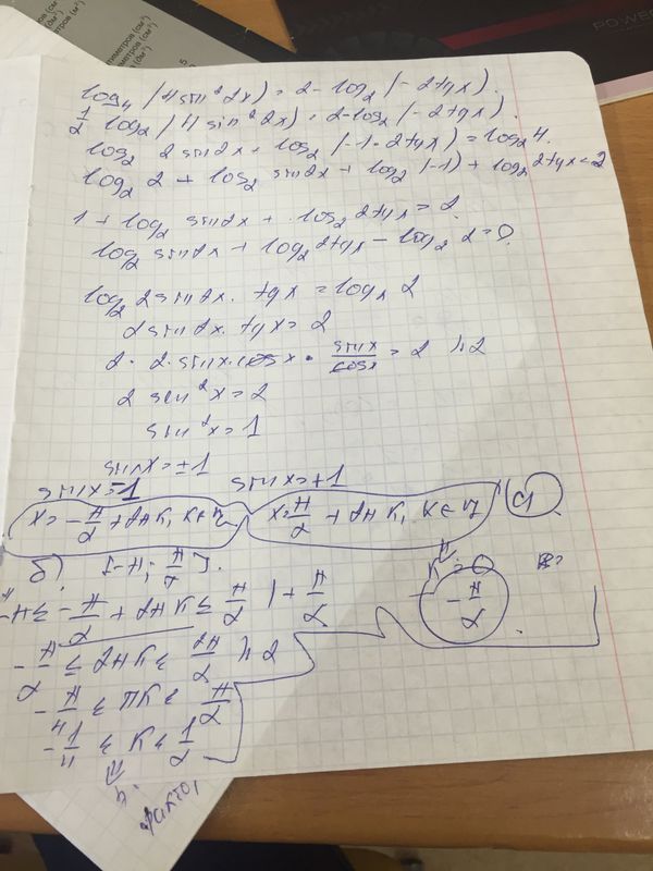 а) Решить уравнение log4(4sin^22x)=2-log2(-2tgx)
