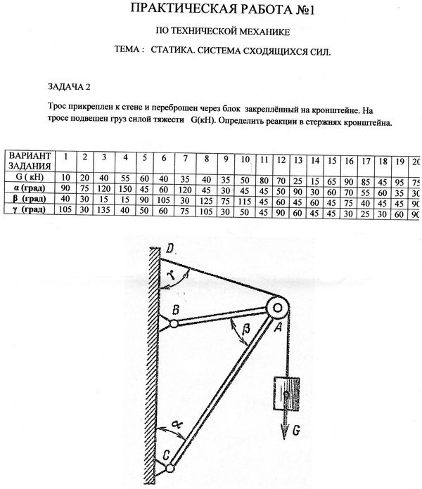 Трос прикреплен к стене и переброшен через блок закрепленный G(kH). Определить реакции в стержнях кронштейна. ( НУЖЕН 10 ВАРИАНТ) , ( НУЖЕН 10 ВАРИАНТ)( НУЖЕН 10 ВАРИАНТ)ПОЖАЛУЙСТА КТО НЕ БУДЬ ПОМОГИТЕ !!!я бы скинул сайт с аналогией задач, ну тут ссылки запрещены , пожалуйста помогите с решением , очень нужна она !