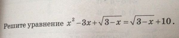 Решить уравнение x^2-3x+sqrt(3-x)=sqrt(3-x)+10