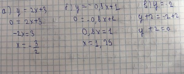 а) у = 2х+3; б) у = – 0,8х + 1; в) у = – 2. решите плиз или обясните как