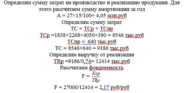 Рассчитать выручку предприятия и фондоемкость ОПФ по следующим данным: материальные затраты – (1820 + N) тыс. руб., расходы на оплату труда работников – (2250 + N) тыс. руб., налоги, включаемые в состав затрат, – 390 тыс. руб., норма амортизационных начислений – 15%, арендная плата – 640 тыс. руб., стоимость основных производственных фондов – (9 + N) млн руб., затраты на один рубль реализованной продукции составили 0,74 руб.