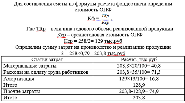Рассчитать смету затрат на производство по следующим данным: выручка от реализации продукции составила (240 + N) тыс. руб., затраты на один рубль реализованной продукции составили 0,79 руб. Материальные затраты составляют 20% от расходов на производство и реализацию, расходы на оплату труда работников – 35%, норма амортизации – 13% (линейный метод), прочие затраты – 66 тыс. руб., коэффициент фондоотдачи – 2.