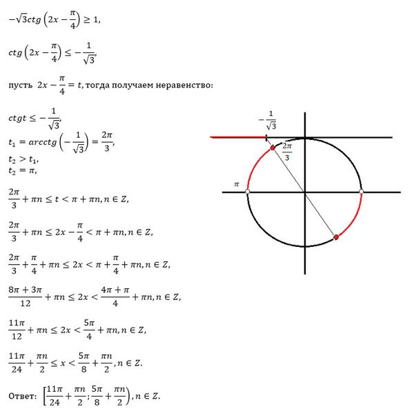 [m]ctg (2x-\frac{π}{4} ) ≤ -\frac{1}{\sqrt{3}}[/m]