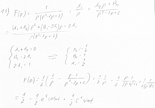 Найти оригинал функции: F(p)=1/p(p^2-2p+2)