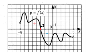 На рисунке изображён график производной функции, определённой на интервале (—8; 5). В какой точке отрезка [-3; 2] функция принимает наибольшее значение?