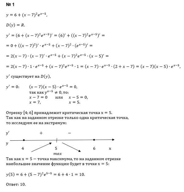 Найдите наибольшее значение функции y = 6+(x-7)^2e^(x-5) на отрезке [4; 6]