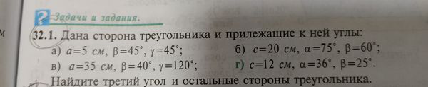 в) a=35 см, β=40°, γ=120°;