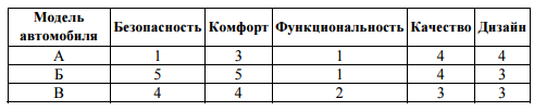По результатам сложных вычислений находим, что наивысший рейтинг имеет автомобиль Б