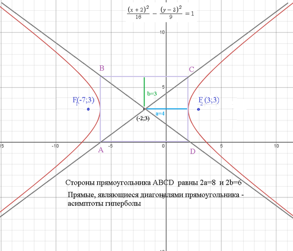 (x+2)^2/4^2 - (y-3)^2/9 =1