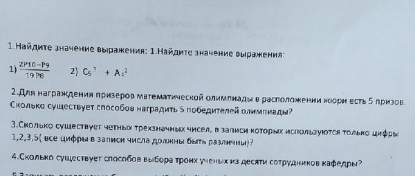 2. Для награждения призеров математической олимпиады в расположении жюри есть 5 призов. Сколько существует способов наградить 5 победителей олимпиады?