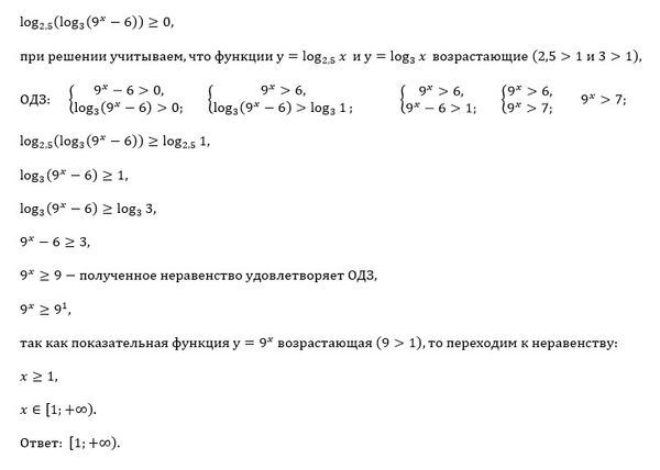 log(2,5)(log₃(9ˣ - 6)) ≥ 0.