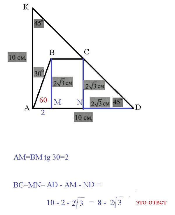∠ AKC=45 ° ⇒ AKD - прямоугольный равнобедренный AK=[b]AD=10[/b]