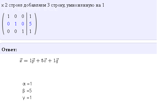 [m]\vec{x}= α \vec{p}+ β \vec{c}+ γ \vec{q}[/m]
