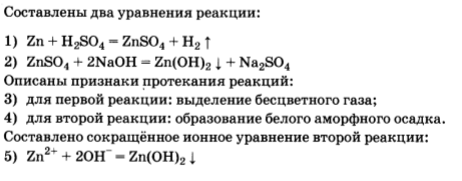 Даны вещества: Zn,H2SO4(разб.), Fe, Cu, NaOH, CuS04. Используя воду и необходимые вещества только из этого списка, получите в две стадии гидроксид цинка(Н). Опишите признаки проводимых реакций. Для реакции ионного обмена напишите сокращённое ионное уравнение реакции.