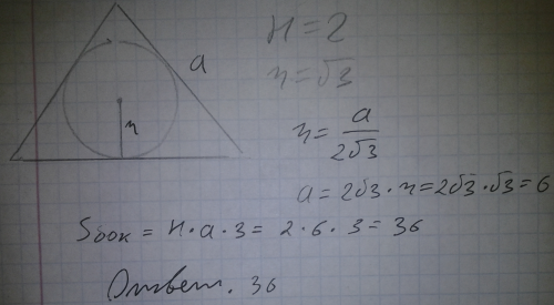 Найдите площадь боковой поверхности правильной треугольной призмы, описанной около цилиндра, радиус основания которого равен sqrt(3), а высота равна 2.