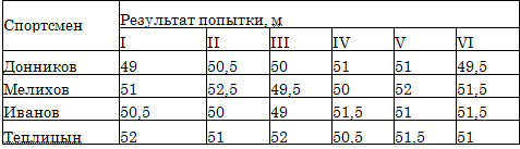 Каков результат лучшей попытки (в метрах) спортсмена, занявшего второе место?