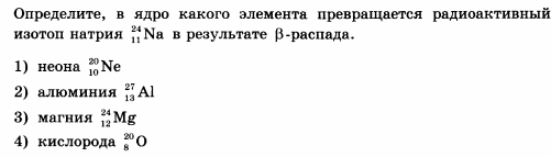 При B-распаде натрий превратится в магний, посредством вычитания электрона Ответ: 3