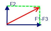 |Fравн| = sqrt(F2^2 + (F1-F3)^2) = sqrt(2^2 + 2^2) = sqrt(8)