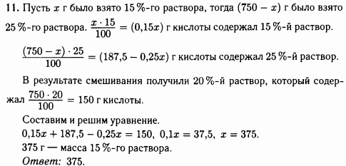 В результате смешивания 25 %-го и 15 %-го растворов серной кислоты получили 750 г 20 %-го раствора. Сколько граммов 15 %-го раствора было взято?