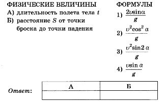 Установите соответствие между физическими величинами, характеризующими движение тела, и формулами, выражающими их в рассматриваемой задаче.