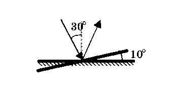 Угол падения света на горизонтально рас-положенное плоское зеркало равен 30°. Каким станет угол отражения света, если повернуть зеркало на 10° так, как показано на рисунке?