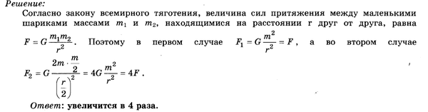 Два маленьких шарика массой m каждый находятся на расстоянии r друг от друга и притягиваются друг к другу с силами величиной F. Во сколько раз увеличится величина сил гравитационного притяжения двух других шариков, если масса одного 2m,
