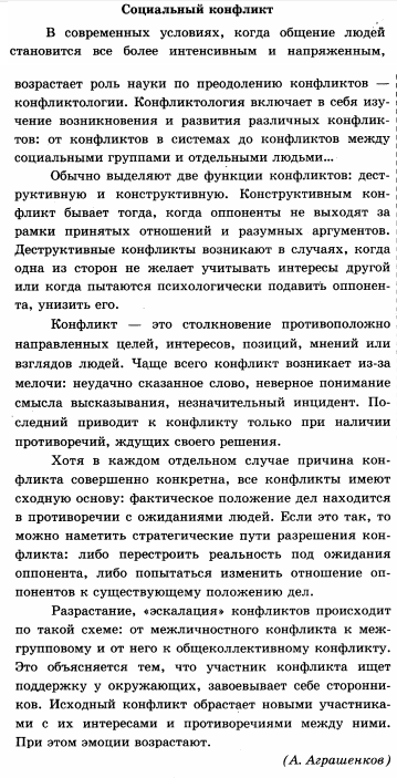 2) приведен фрагмент текста: «Чаще всего конфликт возникает из-за мелочи: неудачное слово, неверное понимание смысла высказывания, незначительный инцидент».