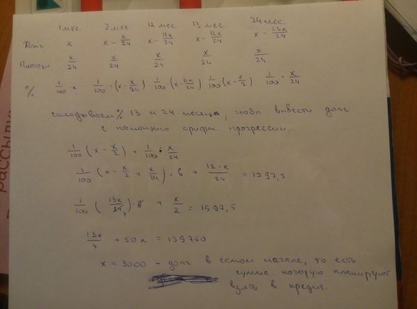 Известно, что за последние 12 месяцев нужно выплатить банку 1597,5 тыс. рублей. Какую сумму планируется взять в кредит?