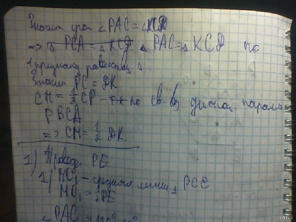 На сторонах AC и BC треугольника ABC вне треугольника построены квадраты ACDE и BFKC. Точка М–середина АB.
