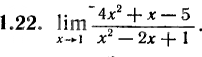 [m]lim_{x →1}\frac{4x^2+x-5}{x^2-2x+1}=\frac{4\cdot 1^2+1-5}{1^2-2\cdot 1 +1}=\frac{0}{0}[/m]- неопределенность