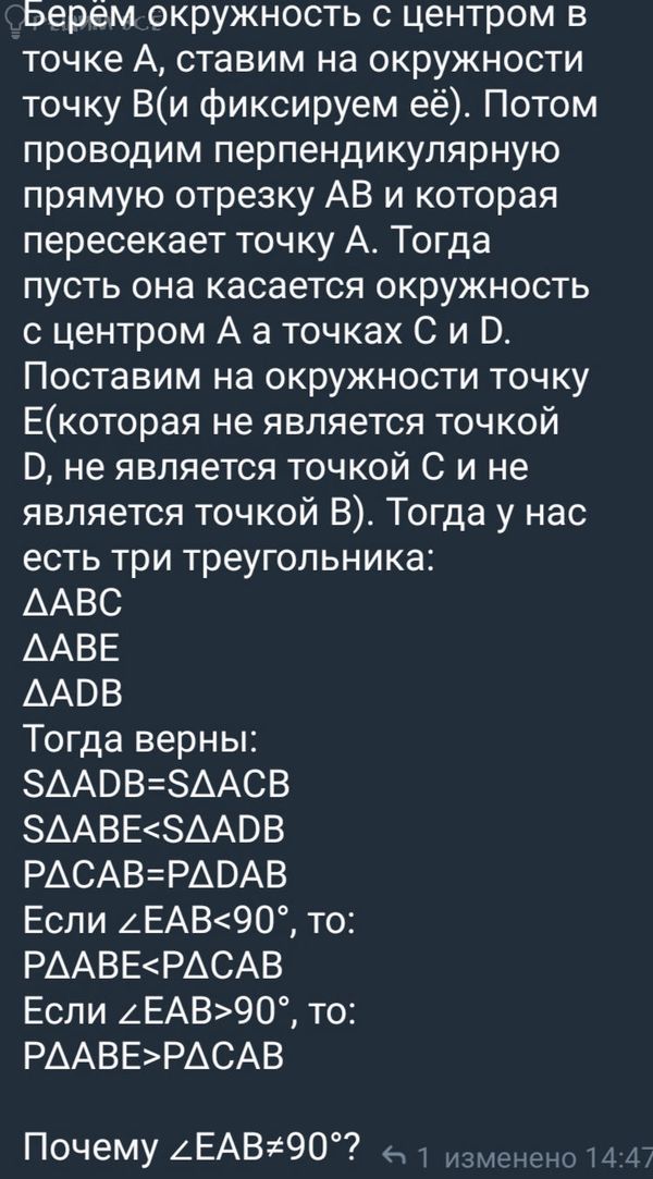 Точки Е я поставил две: E1, при которой угол EAB < 90° (красный)