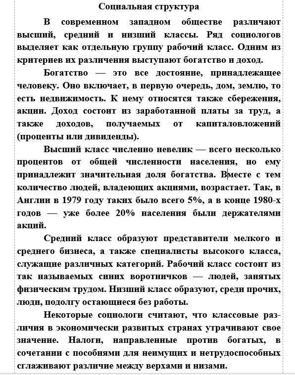 2) фрагмент текста: «Рабочий класс состоит из так называемых синих воротничков — людей, занятых физическим трудом».