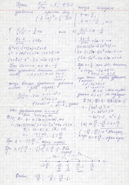 Найдите все значения параметра а, при каждом из которых уравнение имеет ровно три различных действительных корня: ((x-1)/(x^2+1))^2-2a*((x-1)/(x^2+1))+a^2-0,25=0