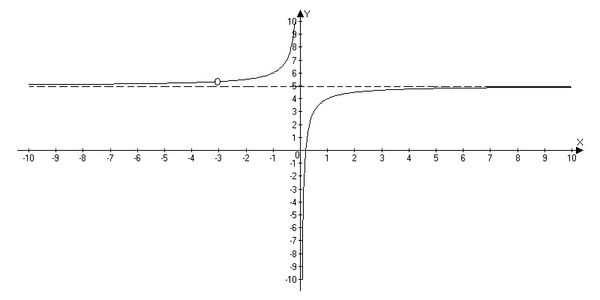 5х^2+14x-3=5(x-0,2)(x+3)=(5x-1)(x+3). Сократим числитель и знаменатель на х+3. Получим функцию у=(5х-1)/х. Почленно разделим на х: у=5-1/х, х≠-3- обратная пропорциональность, график гипербола, ветви расположены во 2 и 4 четвертях, сдвиг графика вверх на 5 единиц.