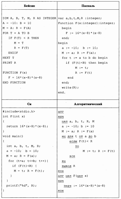 Преобразуем функцию F: 16*(x-8)^2 = 16x^2 - 256x + 1024