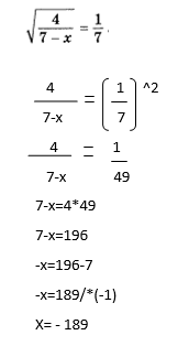 Найдите корень уравнения sqrt(4/(7-x))=1/7