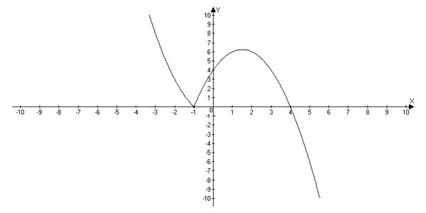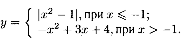 system{|x^2-1|, при x меньше или равно -1; -x^2+3x+4, при x больше -1}
