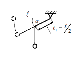 Небольшой шарик массы m, прикреплённый к невесомой нерастяжимой нити длины l, может колебаться вблизи вертикальной стенки. Шарик отклонили так, что нить приняла горизонтальное положение, и отпустили без начальной скорости. При движении шарика вниз нить задевает вбитый в стену гвоздь, расположенный на расстоянии l1=l/2 от оси вращения под углом а=30 градусов, как показано на рисунке. Найдите величину силы натяжения нити T при прохождении шариком нижней точки траектории. Силами трения пренебречь