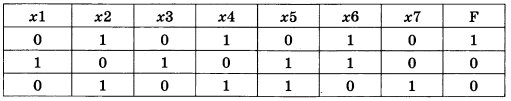 3) –xl ⋀ х2 ⋀ –хЗ ⋀ х4 ⋀ –х5 ⋀ хб ⋀ –x7 | Подходит.