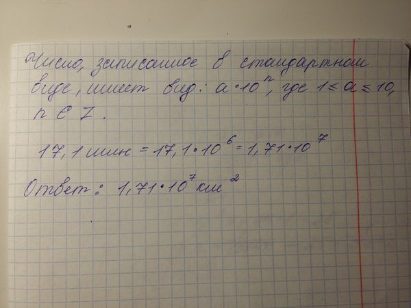 Площадь территории России составляет 17,1 млн км.^2. Как эта величина записывается в стандартном виде?