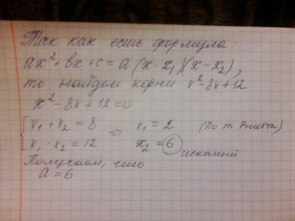 Квадратный трехчлен x^2-8x+12=(x-2)(x-a)...