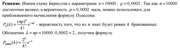 Книга издана тиражом 10 тыс. экземпляров. Вероятность того, что книга сброшюрована неправильно, равна 0,0002. Найти вероятность того, что тираж содержит бракованных книг а) равно 5; б) от 3 до 5.