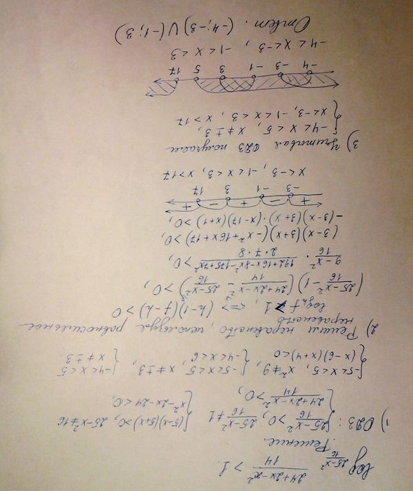 Решите неравенство log((25-x^2)/16)(24+2x-x^2)/14 > 1
