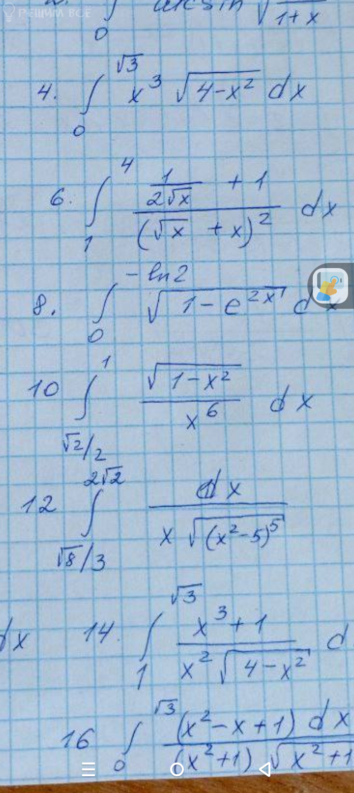 12. ∫ от √(8/3) до √2/2 dx/(x√(x²-5)⁵)