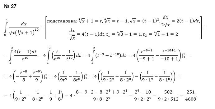 27. ∫ от 0 до 1 dx / (√x (4x+1)^10)