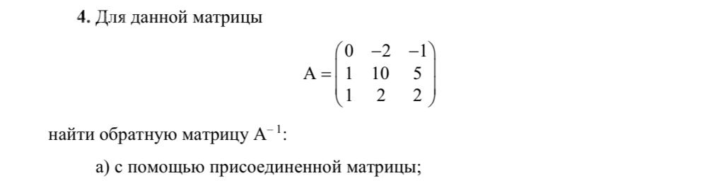 Решите матрицы, надо найти обратную матрицу А-1, с помощью присоединенной матрицы(все написано на картинке ниже), буду очень признателен