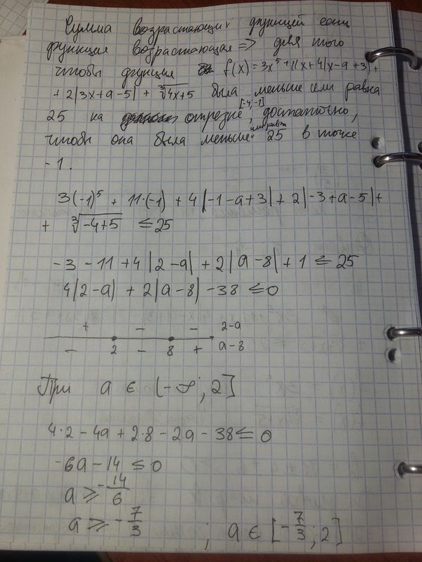 Найдите все значения параметра а, при каждом из которых неравенство 3x^5+11x+4|x-a+3|+2|3x+a-5|+∛(4x+5)≤25 выполняется для всех значений х на отрезке [-4; -1]