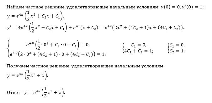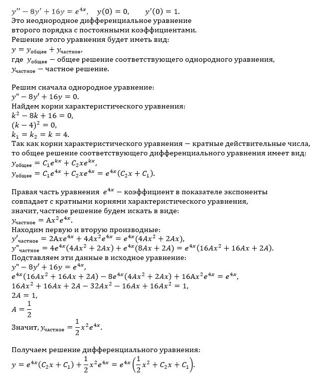 Найти частное решение дифференциального уравнения, удовлетворяю- щее начальным условиям y − 8y +16y = e 4x , y(0) = 0, y(0) =1.