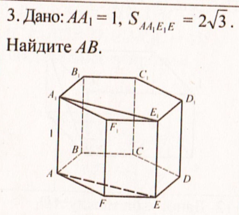 3. Дано: AA1 = 1, S_AA1E1E = 2√3.